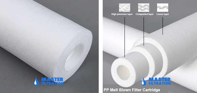Master Filtration MFRF Series 222 226 End Cap PP Melt Blown Filter Cartridge, with 222, 226 and other various end cap, is suitable for different kinds of filter housing. By heating and melting, spinning and traction technology, the polypropylene (PP) fibers were used to bond themselves to form a three-dimensional curved microporous structure with larger surface area. The fiber diameter and density change controllably in the diameter direction of the filter cartridge, and thus it forms a multi-layer gradient pore dense inside and loose outside structure