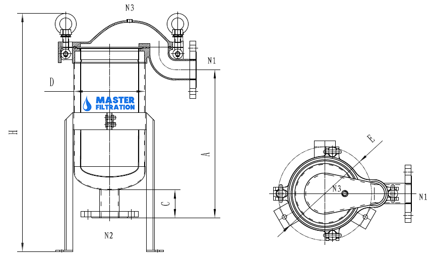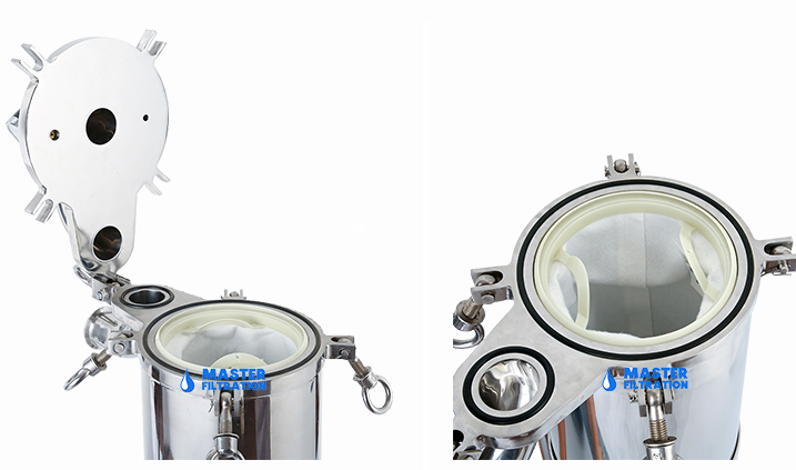 Master Filtration MFST Series Stainless Steel Top Entry Single Bag Filter Housing is a kind of pressure filter device, adopting top to side mode, which is mainly composed of filter cylinder, cover, quick opening mechanism, stainless steel filter basket and other components. Liquid flows into the filter bag through the top enter. Particles are blocked in filter bag and purified liquid flows out.