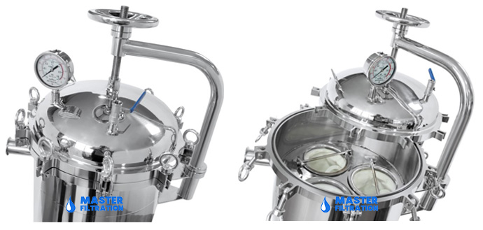 Master Filtration MFSB Series Stainless Steel Multi Bag Filter Housing, adopting side to bottom mode, is suitable for high flow and large solid sediment liquid. Filter bag quantity can be increased from 2 bags to 24 bags. SS304, SS316L filter housing with inner & outside surface anti-corrosive coating is suitable for various acid, alkali and hot temperature liquid. Wide top inlet makes liquid evenly be distributed on the top of filter bag, avoiding turbulence bad effect.
