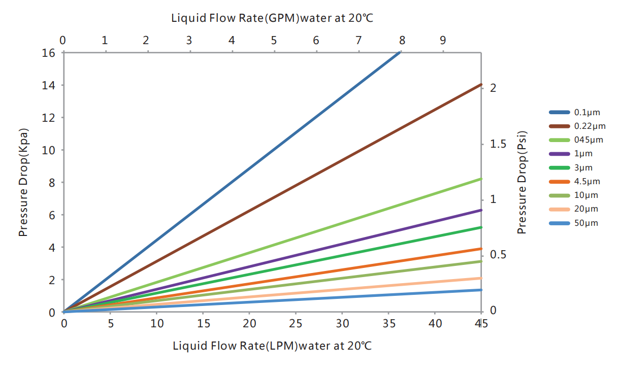0.1, 0.2 0.45, 0.65, 1.0. 2.0, 3.0, 5.0, 10, 30, 40, 50. 70, 100 um (customized) |
